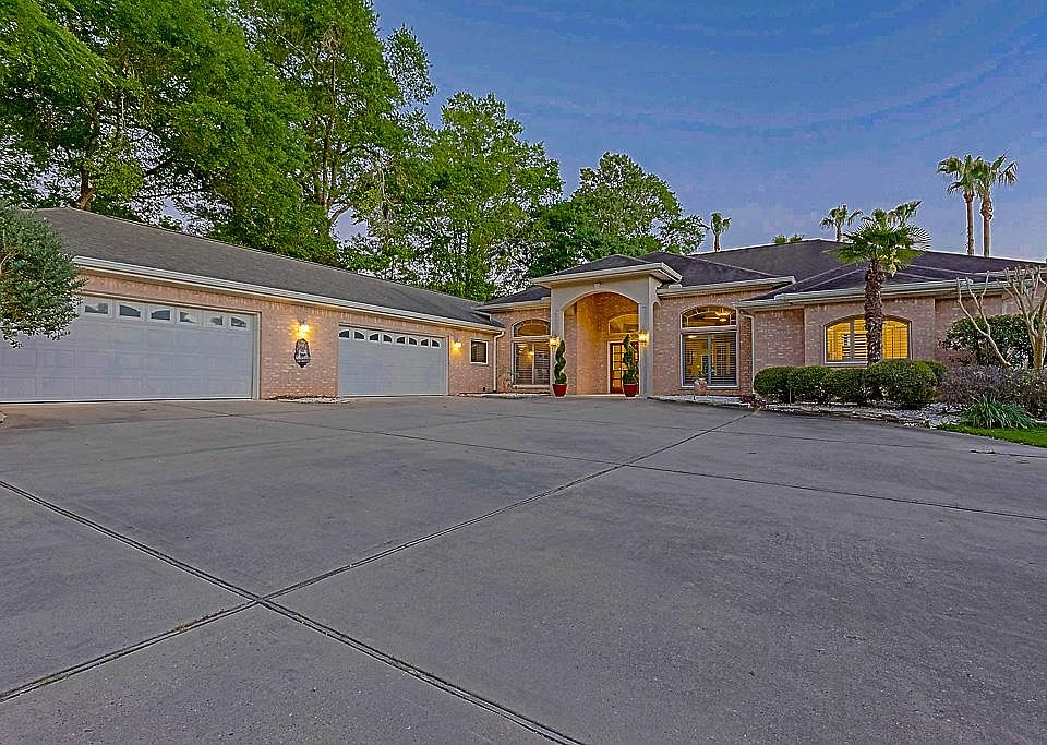 This stunning 1-story sits on approx. 3.1331 acres on Lake Conroe. Privately gated and fully fenced, the home boasts of matured trees, a vineyard, a vegetable garden, saltwater pool, a basketball court and two covered boat docks with jet ski lifts and boat lift. Park your RV in a designated parking space that provides hook ups. The huge kitchen includes stainless steel appliances and granite counters. The master bedroom is huge and offers private access to the pool, a master bath with double sinks, separate shower and tub, with a large master closet with built-ins along with yet another closet. The three secondary bedrooms are large and split from the master suite for added privacy. The sprinkler system has 70 zones to keep the acreage well-maintained. The great room at the entrance of the home has a full service wet bar with wine refrigerator for entertaining. The property provides an aerobic septic system and water well. No MUD. The covered, screened-in back porch has plenty of room for a grill and patio to enjoy outdoor entertaining. Cool off in the saltwater pool that overlooks the lake. Two separate garages include seven spaces all together for your play toys, vehicles and storage. Each garage has a workshop area with built-in cabinets. There is a fenced-in area to store your boat and jet ski trailers as well. In addition to all of these amenities, this lakefront home currently has two bald eagles that have taken residence in the trees above the house. Come and see this outdoor paradise. Its a 1-story, on acreage, on Lake Conroe. The sunset views are phenomenal. A retreat for all.