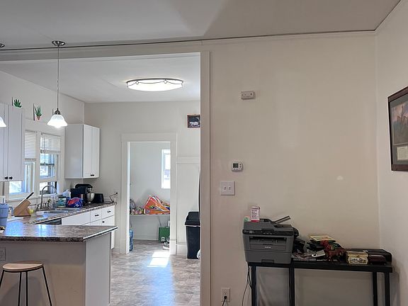 Nice 4 bedroom Craftsman home with central air conditioning. House was renovated a few years ago. Refinished hardwood floors in living and dining room. Open concept kitchen with large pantry. Two bedrooms, bathroom, kitchen, living and dining room on main floor. Two non-conforming bedrooms, living room, bathroom, and laundry in basement. Fenced yard with 2 car garage on alley. Some pets accepted on a case by case basis. Tenant pays all utilities. No smoking inside house or garage. Ample off street parking. 12 month lease. Some pets considered with additional pet rent.