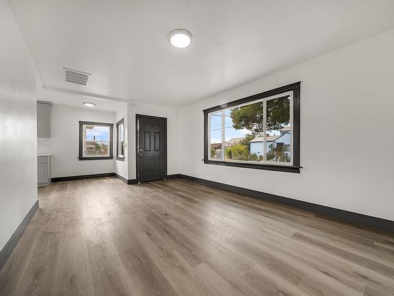 An excellent starter home for a first-time buyer. This 2bd/1ba East Oakland home has been extensively remodeled, upgraded, and updated. New laminate flooring, plumbing, electric with LED lighting, roof, central heating, and much more. The dining area and kitchen flow in an open architecture style. The kitchen comes with a new refrigerator, dishwasher, new cabinets, new stone tops, and a stainless steel sink. The bathroom has been completely remodeled with a full-sized shower and tub. There is a laundry room with washer and a gas dryer. The property has a large gated area for parking up to 3 to 4 cars. This is priced to sell.