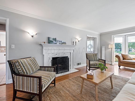 HISTORIC CHARM! From the moment you enter this home, you will love its historic charm and tasteful updates. The living room is inviting with an elegant fireplace. Crown molding & original hardwood floors continue into the formal dining room featuring wainscotting & built-ins. Updated kitchen w/built-in banquet, high-end appliances, & granite countertops. Main floor has a flex space with fireplace great for a tv room or den & half bath. All four bedrooms are upstairs w/full bath plus the Primary bedroom has a large, walk-in closet & private bath w/shower & jacuzzi tub. Enjoy the 3rd fireplace in the basement with surround sound as well as an additional flex room that could be a bedroom w/egress window. Laundry room has a shower & space that could be converted into an additional bathroom.