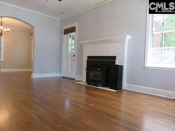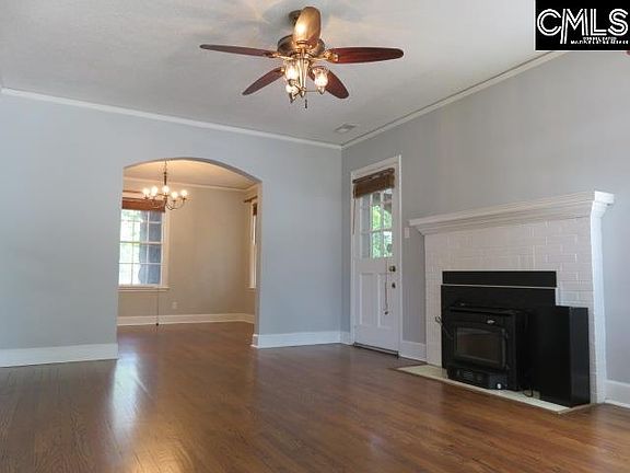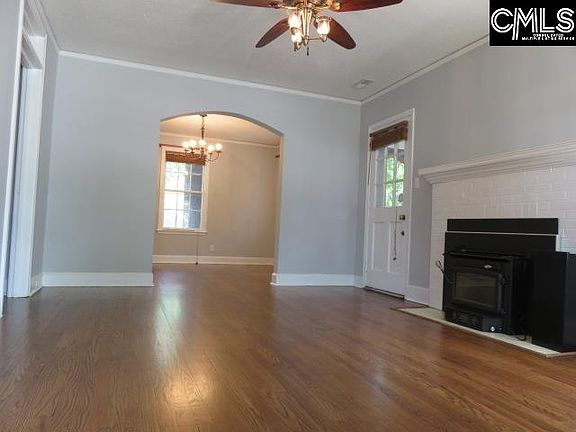 3 bed 1 bath 1220 sq ft w/side porch. Gleaming hardwood floors and fresh paint throughout. Kitchen with granite countertops and tile backsplash, gas stove, new appliances and a breakfast bar. Formal dining area. Living room with wood burning fireplace & /brand new wood stove. Brand new HVAC with all new ductwork. Large privacy fenced backyard. Centrally located close to USC & Fort Jackson. MUST SEE! Satchel Ford Elementary, Crayton Middle & AC Flora High School.