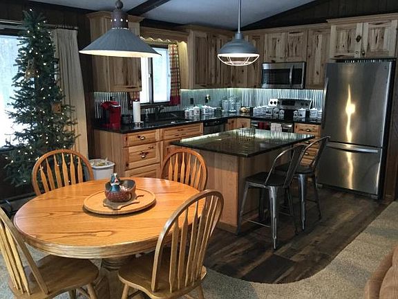 Check out this 2 bedroom home nestled in 2.5 acres of trees just across the road from the St Germain golf course and bike/hike trail. This is the perfect starter, retirement or vacation home. Vaulted ceilings and a wall of southwest facing windows and sliding doors in the great room lead out to a large recently rebuilt deck. (2017) The kitchen was redone in 2016, island and snack bar with granite counter tops installed, new stainless steel appliances and back splash, all make this kitchen great for serving and entertaining plus wood burning stove in dining room. The lower level is finished with a bar and entertainment area make yet another fun spot to kick back, relax and enjoy company. Two generous sized bedrooms with ample closet space on the main level, add to the fact that this is the home for you!