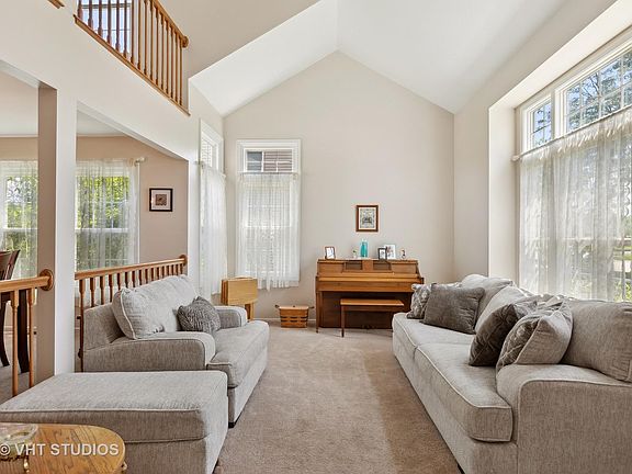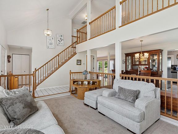 Owners Pride Shines Thru This Wonderfully Located Beautiful Family Home Offering Great Curb Appeal From its Pretty Landscaped Yard To the Inviting Front Porch! No, it doesn't stop there it continues into the home with the Bright and Airy open Floorplan. Upon entering, you will be greeted by a cathedral ceiling sweeping up to the large loft overlooking the entertaining sized living room that overlooks the dining room. In the perfectly appointed eat-in kitchen you will find stainless steel appliances, plenty of white cabinets and counter space including a planning desk and pretty tiled backsplash. Adjacent to the kitchen is the family room with fireplace and 2 large sliding doors leading to the the deck overlooking the beautiful manicured yard. As you make your way back inside to finish off the 1st floor is the laundry room and powder room. On the 2nd floor you will find the vaulted primary suite with 2 walk-in closets, primary bath with whirlpool tub and a separate shower, 2 additional bedrooms that are generous in size and the hall bath. More space is needed? You will find that in the finished walk-out basement that can easily be made into the in-law arrangement if you would like offering a full bath, the 4th bedroom, a rec room and kitchen area (Just need to add is the fridge & stove) or teen retreat, mancave....or whatever you desire. In addition Newer windows within the last 6 years and blinds less than 1 year, water heater 2 years old, furnace and air conditioner 5 years, roof 10 years, invisible fence. As Is. Call This House Your Family Home Today! Come See Before Its Gone!