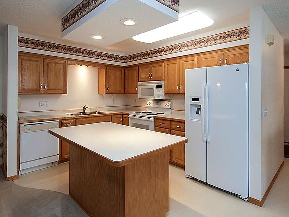 2 bedroom, 2 bath, one-level living twin home. Home features open floor plan, vaulted ceiling, and gas fireplace. Master bedroom has a private bath with a walk-in shower and grab bars and a walk-in closet. Kitchen features oak cabinets and a center island. Main floor laundry. Garage is finished. All living facilities on one level. America's Preferred Home Warranty included.