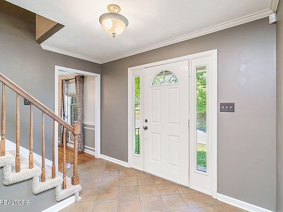 Executive all brick 3 story home located in popular 37922 Zip code and Bluegrass/Northshore area. Updates galore! Boasting all oak hardwoods and tile on main level, custom moldings, main level office, formal dining & spacious great room with gas fireplace. Welcome home to this stunning property which boasts a fabulous open floor plan on a private lot. From the soaring 2 story entry, to the formal living room/office, formal dining, gourmet eat-in kitchen which opens to huge great room with brick fireplace, this home has so much to offer. Large kitchen with generous amount of custom cabinets, upgraded appliances to include flat top range / oven, & spacious island. Upstairs features a primary suite plus 3 additional bedrooms + massive bonus room located on the ground floor. Plush primary suite feature tiled shower, garden tub with tile surround and double vanity. Ground level includes completely remodeled bonus/5th bedroom or in-law suite. Large level rear yard with wood fencing, and fire pit perfect for entertaining, children and pets.