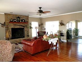 - LIVING ROOM DESC: Crown Mold, Wood Floor, Ceiling Fan