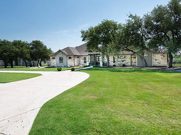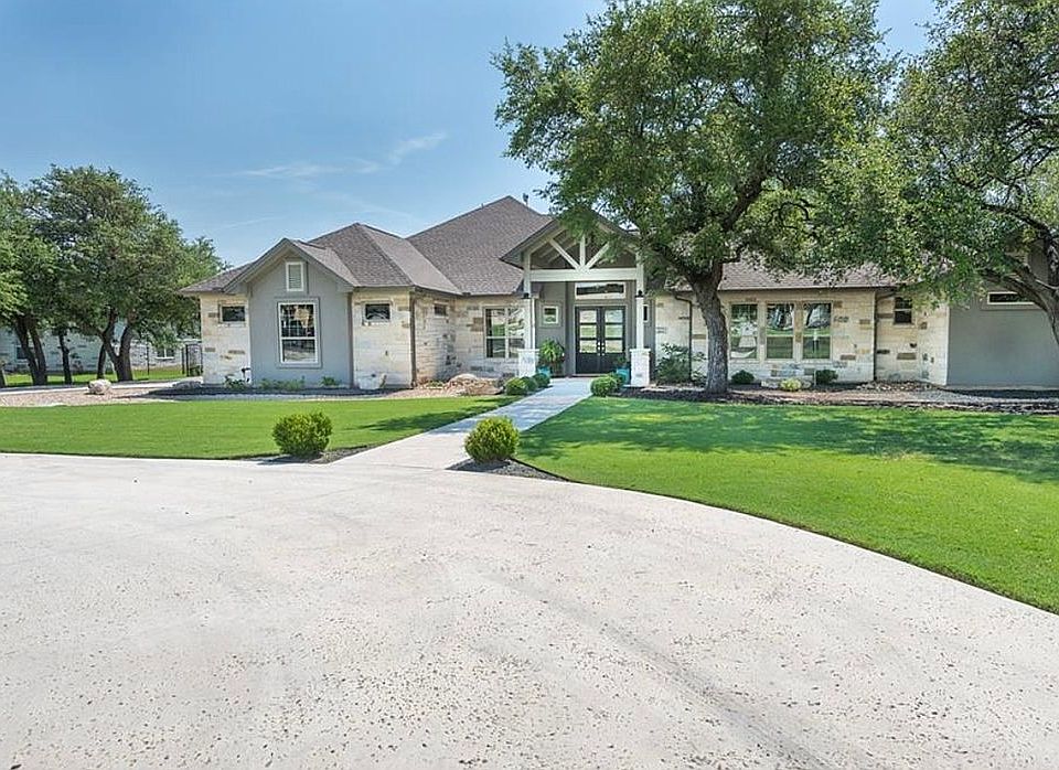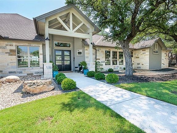 This exceptional former model was built to showcase craftsmanship and casual luxury in Fredrickson Ranch. It is rare to find a one level home of this size. Nestled on a manicured property of more than an acre and a wrought iron fence that gives you room to roam. Four Bedrooms, four full baths and a four car garage with epoxy floors to start. The gourmet style kitchen has abundant counter space and a bank of glass front 56" cabinets to show off your best. The bar area is equipped with a beverage refrigerator so you never have to miss a second of the game. When it is bed time, guests or family go to one side of the home and the owners enjoy the privacy of the primary bedroom wing where you will find a circular coffered ceiling and a better than spa like bath that includes a stand alone tub, a shower with extensive tile work and two wanded shower heads. A closet you can dance in. The covered patio is large enough for a shady outdoor gathering and a dinner served directly from the outdoor kitchen that is equipped with a grill, a sink and granite counters. Take a few steps into the yard to find the bubbling hot tub, a cabana and a nicely finished and air conditioned shed that is the perfect get away for an office, workout room, hobby room or a she-shed. Fredrickson Ranch is located near the shores of Lake Georgetown where recreational opportunities abound including the Crockett Garden Falls, the Cedar Breaks Park and the San Gabriel River Trail. Several options for groceries are close by. The neighborhood is filled with custom homes on oversized home sites that give you the feeling of living in the Texas Hill Country with modern conveniences being just a few minutes away. The builder says 3,930 SF and WCAD measured at 4282 SF which includes the shed.