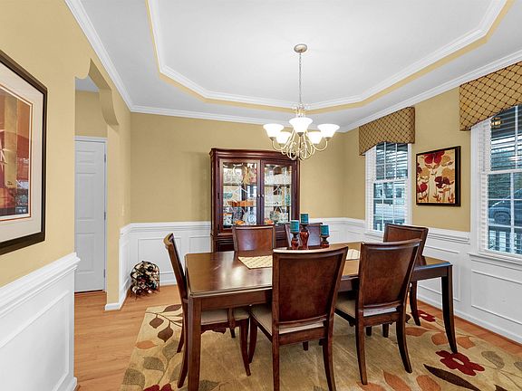 The chef's kitchen features blonde maple recessed panel cabinets with crown trim, stainless steel appliances include built-in microwave, NEW gas range/oven and NEW dishwasher! Spacious owners suite offers large WIC, ceiling fan with light and door to NEW walk-out porch. Owners bath offers ceramic tile floors, dual vanity, garden tub & separate walk-in shower. Bright family room features corner gas log fireplace with custom surround. Large fenced backyard. Unique custom features include beautiful site finished hardwood floors, scalloped doorways, crown molding, dining room trey ceiling, and chair-rail with picture frame wainscoting. Cute mudroom with built-in mud bench with coat hooks & beaded board backer. Relaxing wrap around front porch. Screen Porch and Deck out back for grilling and entertaining. Exterior Paint 5-Years Ago | 6-Year Old HVAC | 4-Year Old Roof | 2-Year Old Garage Door | 4-Year Old Hot Water Heater | Interior Paint 2-Years Ago | NEW Bermuda sod & mulch in the backyard | Great neighborhood amenities available. Convenient Wake Forest location near shopping, dining and schools.