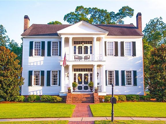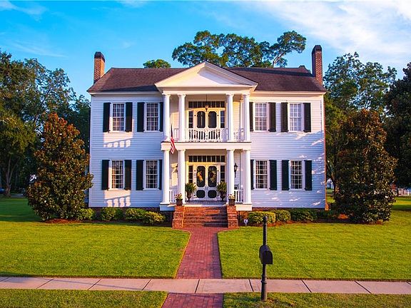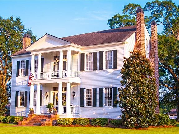 A STEP BACK IN TIME.... Own a piece of history with this beautiful 1840 Greek Revival Estate. This grand home offers character and charm of "Gone With The Wind", while providing the desirable amenities of everyday living. Each detail of this home exudes timeless charm. Original heart of pine flooring, original trim and moldings, fireplace in each room, solid oak doors throughout. "The Dominick Place" sits at the end of a tree lined entrance drive. Enter the front door through a set of dignified,soaring Grecian columns that grace the front porch and balcony above. The floor plan is the "four over four" typical for that period. This gracious plan boast a grand foyer, flanked by the parlor and formal dining room. The foyer continues to the modern kitchen and to the master bedroom and bath. The elegant staircase winds upward from the foyer to the four bedrooms on the second floor, one of which has been converted to a large luxurious bath. The third floor was once used a a ballroom and was completely open. It now has been divided into two bedrooms and a bath has been added as well." The Dominick Place" is a fine example of the mansions that are associated with the tradition of Old South architecture. Too many details to list!!!