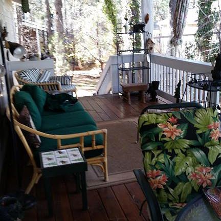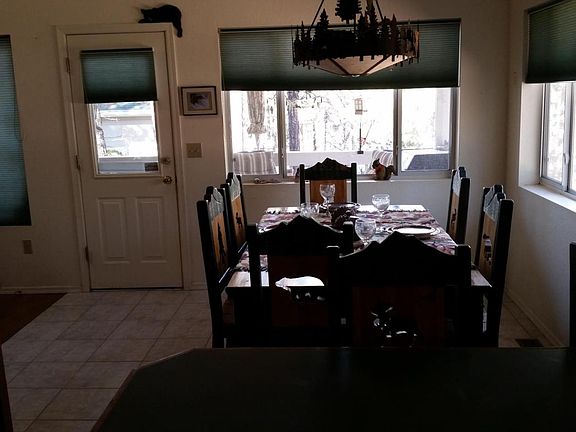 Wonderful home with vaulted ceilings and cozy fireplace..this 3 bed 2 bath also has an oversized 2 car garage with lots of storage.. corner lot is heavily treed and has a huge covered front porch and very nice covered back deck.. cabin style art and furnishings are available on a separate bill of sale.. great area!! Don't miss this one!