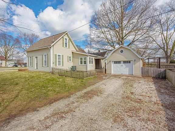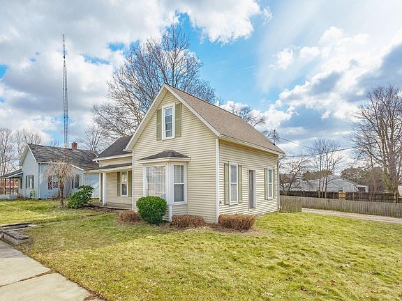 **OPEN HOUSE Tuesday, February 27th 4-6 ** An excellent location in town, situated on a large fenced-in corner lot with outdoor living space is ready to call home! Sip iced tea with your guests on the covered front porch and then head inside through the dedicated foyer. A bay window in the living room makes an excellent reading nook and a built-in bookshelf is ready to hold your library of favorite reads. French doors lead to your office or nursery featuring hardwood floors and floor to ceiling windows. This room could also be used as a bedroom. Down the hall is the spacious primary bedroom with a walk-in closet. The gorgeous kitchen is sure to become your favorite spot with its vaulted ceiling, attractive cabinetry, French doors, and natural lighting. An extra prep area with a second sink is a great place to whip up a drink and serve to your friends or lay out a buffet while entertaining. The main level bathroom also houses the washer and dryer for convenience. Upstairs is another bedroom and additional space that could be used as an office or as needed. The basement provides ample storage and could even be finished for more living space. Outside, the back patio provides space to grill and have a picnic table to enjoy the fresh air while having lunch. A covered walkway from the house to the garage will keep you dry this Spring! The garage has a loft for extra storage. Beyond the garage is a huge fenced in yard to enjoy. The firepit and swings are sure to be a hit this summer. It’s a rare find in this location to have such a large yard, a garage, and plenty of off street parking so you can easily host the next holiday get together.