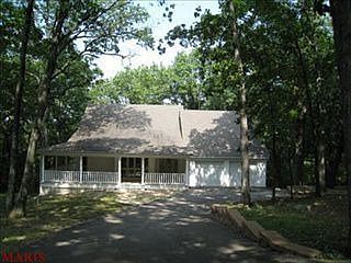 Charming custom built 1.5 story home with fabulous wrap around porch. Over 2700 sq. ft. of living space. 3 bedrooms, 2 baths home sitting on over a 4 acre wooded lot. Updated kitchen with stainless steel appliances( just installed with transferable warranties), including double ovens, counter top, back splash,double sinks, wood floors and french doors to deck. Master suite is on the upper level with full bath. Loft/sitting room overlooks the great room. two bedrooms and a full bath on main level. Lower level is a walk out and has a family room with the second fireplace and a large storage area. New Carpet is being installed. Privat and ready to move in!