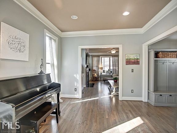- Interior: Foyer - Entrance, Ceilings 9 Ft Plus, Double Vanity, Bookcases, Garden Tub, Ceilings - Trey, Hardwood Floors