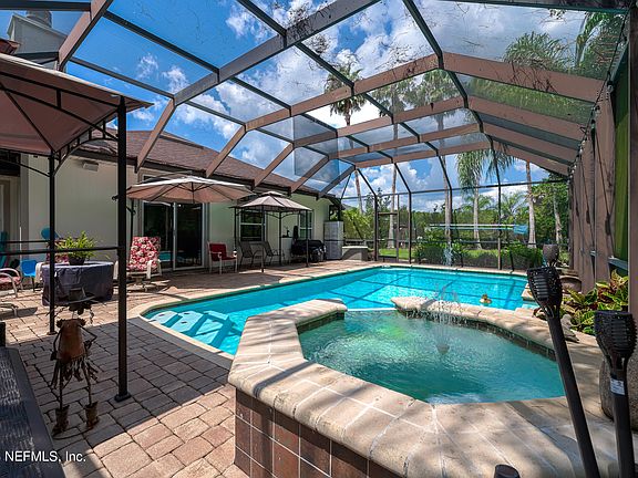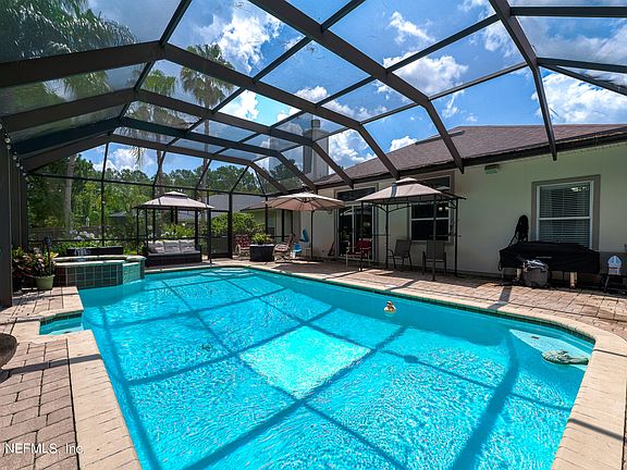 POOL HOME! Wonderful brick front, four bedroom home is located at the back of a cul-de-sac. You can sit in the family room or work in the kitchen and view the screened pool which has pavers and a spa. The home has a separate living room, a dining room and a family room with a fireplace. The kitchen has granite countertops, beautiful cabinets, stainless steel appliances, and an eat-in area. Master bedroom is large with two walk-in closets. There is no carpet in this house. The inside laundry room has cabinets for storage. It has a two car garage. The lot backs to Pat's Nursery. The roof was installed June of 2018 and the AC was replaced in January 2018. Fleming Island Plantation has two pools, tennis courts, basketball, a golf course and a clubhouse.