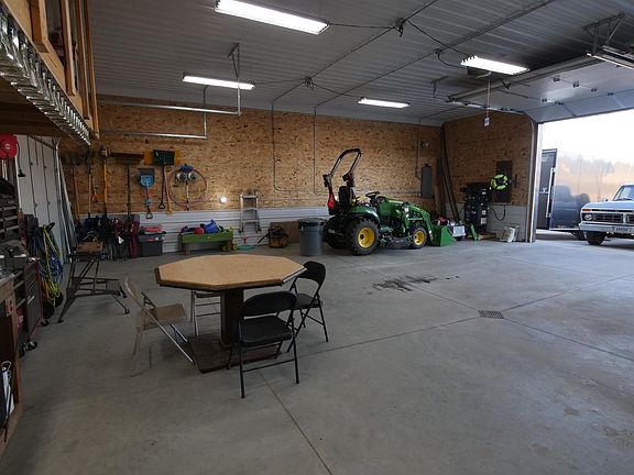 - Parking features: Attached, Detached, Garage: 220 V, Floor Drains, Heated, Insulated, Lights, Opener, Oversize Door, Sheet Rock, Work Shop, Driveway: Concrete
