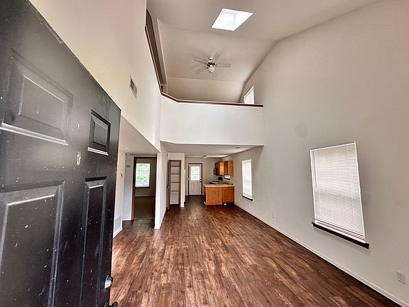 This unit has 2 bedrooms and 2 full bathrooms, the downstairs has been upgraded with hardwood-vinyl flooring. The large living room has a fireplace and a vaulted skylight that reaches up to the loft. There is a bedroom and bathroom on each floor of this 2-story apartment, and it is set back in a quiet cul-de-sac with a wooded back yard allowing for a private back yard. One year lease, contact property manager. Landlord handles landscaping, tenant handles utilities.