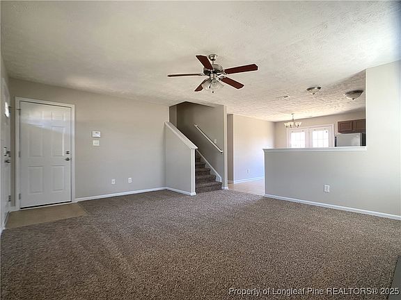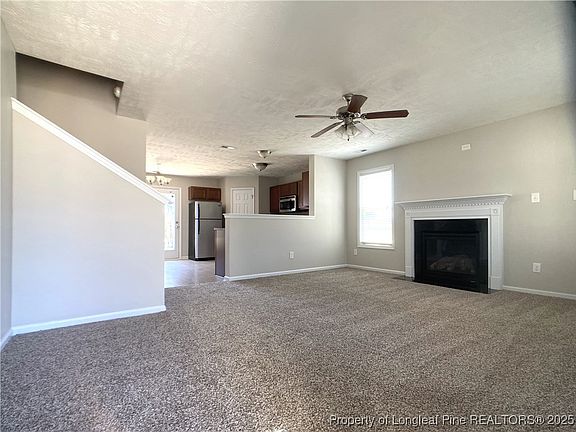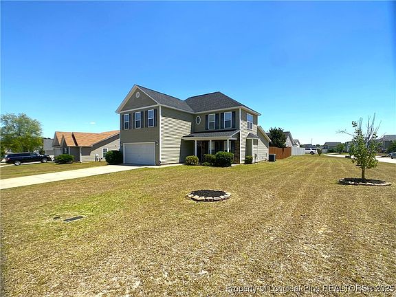 Nestled on a corner lot, this 3 Bedroom/2.1 Bath home with upstairs loft area has so much to offer. Located in the quiet and well-kept subdivision of Scotts Mills North @ Treyburn, this Home boasts a Freshly Painted Interior & Brand-New Carpet Installed throughout the home. 1st floor has semi open concept floor plan that includes living room and spacious kitchen with eat in area. Half bath locate off the kitchen and 1st floor Primary with WIC and private bathroom. 2nd Floor includes a 2nd living area perfect for upstairs entertainment, 2 bedrooms, full hall bath that connects to one of the rooms and laundry closet. Enjoy outdoor entertaining and privacy with a fully fenced in backyard. Easy drive to Ft Bragg & Fayetteville for shopping and entertainment.