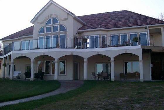 Exquisite reverse 1.5 story Mediterranean style home with a Tuscany theme on 2 waterfront lots. From the open floorplan to the barrel ceilings and the massive windows overlooking Lake Viking, no details were spared in this modern home. The master suite boasts a walk in tile shower, jetted tub, sitting area, and a private laundry room just off the walk in closet. Other impressive features include a gourmet kitchen with Shirestone countertops, stainless steel appliances and gorgeous cabinetry. The peaceful sitting room off the kitchen is kept private with breathtaking leaded glass doors. The lower level greets you with incredible gleaming floors accented in rich colors, a full service bar, fireplace and extra bedrooms for your family or guests. Off the family room is an unfinished area perfect for extra storage or that theatre you always wanted. Don't miss this home, ones like these don't come around often.