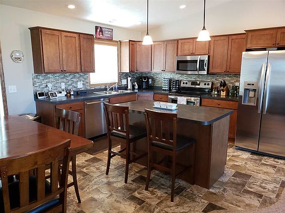 Beautiful home in desired neighborhood. Kitchen has soft close drawers, a glass back-splash and sliding door that leads to a low maintenance trex deck. The lower level family room includes a very nice wet bar with bar fridge and stools. The 45" smart TV and mount in the family room stay with the home. This room also has a sliding door that leads to a back patio. The large backyard has low maintenance fencing and a shed. The three-stall heated garage includes a built-in workshop and floor drains. All appliances stay including the washer and dryer. Owners have a yard maintenance contract with Mr. Lawn and the remaining spray applications convey with the property.