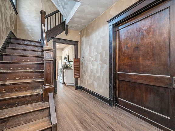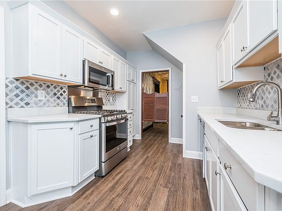 Fabulous home with charm and numerous upgrades, not to mention great location. Original pocket doors to living room and dining room. Upgrades include a new eat-in kitchen, bathroom, vinyl flooring on the first floor, plumbing to the street and electrical. Lovely front porch and back deck for outdoor living. Second floor includes 3 bedrooms and a full bathroom. There is a bedroom on the third floor. Laundry is in the basement with a bonus Pittsburgh Potty. Walking distance to "T", restaurants, shopping and minutes to downtown. There is a driveway for parking.