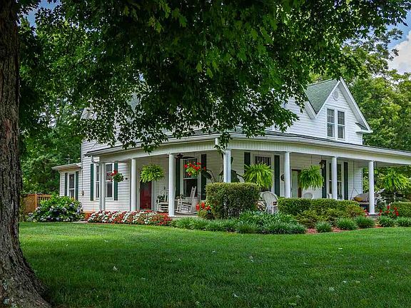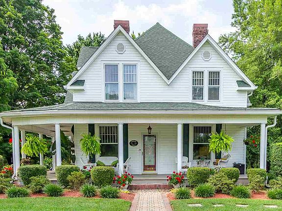 Beautifully restored historical "Cherry Villa." Originally built in 1914 and well known for the "first tourist" or bed and breakfast in the area. This home has been well preserved over the years. From the original hardwood floors to the astounding original carved carpentry of trim throughout the home. The first floor of the home contains a newly remodeled master suite with double sided fireplace into the parlor. Remodeled master bath with walk-in shower, separate jacuzzi tub and updated vanities, fixtures and laundry area. The living room with sliding solid wood pocket doors connect to the oversized dining room and flows into the remodeled kitchen with gas cook-top, double ovens, granite counters, bead-board ceiling, abundance of custom designed cabinetry with pantry in wall and lighting. Off of the kitchen is the enclosed sun-room and mud room areas. Take a walk up the winding wooded staircase to the upper level boasting an additional master suite with original hardwoods, tiled walk-in shower and overload of closet space. Additionally, 2 large bedrooms share the upper bathroom. Original glass windows in front of home. The exquisite wrap around porches boast the front of the home for morning and evening sitting. Recent addition of 20x30 paver patio with sitting wall and hand-laid fire pit. Lower level basement accessible with garage door for easy entry for storage items. Newly paved and sealed asphalt driveway. Gardeners dream with the extensive landscaping including several perennial beds, with color from spring to fall. Many original plantings date back to the 1900's. Recent roof, HVAC, wiring, plumbing, energy efficient doors, replacement of storm windows and so much more. Come see for yourself.