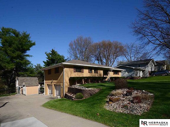 Welcome to the amazing gem (ALL BRICK) in a quiet neighborhood with easy access to 90th and Dodge. The sellers have lived in the house 50+years, and you can see the pride of ownership and how meticulously maintained it is, it just needs some updating. Wood floors under carpet. The kitchen cabinets are older, but custom made. Eat in kitchen with some SS, Large LR, Master has ½ bath, LL has large FR with tons of storage and ¾ bath. Garages have loads of built ins that stay. Walk out from garage to the covered patio and back yard, which looks like a park with sprinkler system, waterfall, landscaping and 2 outbuildings. One is for lawn equipment, other one is a workshop with Electric, both cement floors. No backyard neighbors. Newer Driveway, Windows 2009, HVAC & AC 2014, Full iron fence, Roof 2018, New garage door openers. Easy access to Dodge street to go downtown or I-680. Again, I cannot stress the potential this property and house have to offer. A MUST SEE!