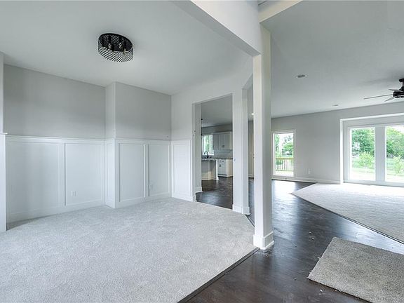 Another Willow plan available in Staley Heights! Everyone loves the kitchen layout in this Willow plan- extended island and walk in pantry. Painted Cabinets. Living Room with Fireplace and cabinets on either side.(NOTE cabinets run to floor not floating as in photo!) Builder has enclosed the "Dining Area" opening up to the Kitchen side to serve either as formal dining or office! Dropzone and half bath complete the main level. Second level with a spacious primary bath, large tiled shower, free standing tub, closet opens to actual Laundry ROOM! Two bedrooms share a bath and 4th Bedroom ensuite with spacious private bath! This home will have a covered deck. Don't miss out! Fox Hill - New Mark- Staley High attendance area! Exterior Photos of the actual home. Interior photos to show example of finish. Not all homes finished alike and builder discretion for design changes. this one at TRIM stage - LIMITED time to make selections!  Expected completion February-March 2025