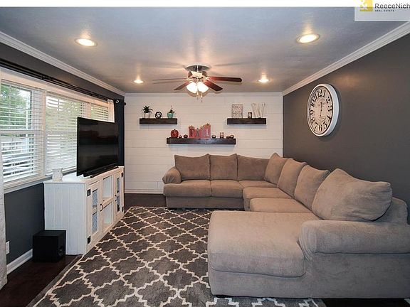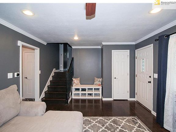 Rare 4 bedroom tri level in Gladstone - completely updated! Exterior paint completed this week. Interior has fresh paint. Custom updated finishes include darker stained hardwood floors, white trim & crown molding, rich shades of gray on the walls. Living room has a white accent wall with floating shelves. Great kitchen has gas range, built-in microwave above, dining area with door out to patio and huge, fenced backyard.