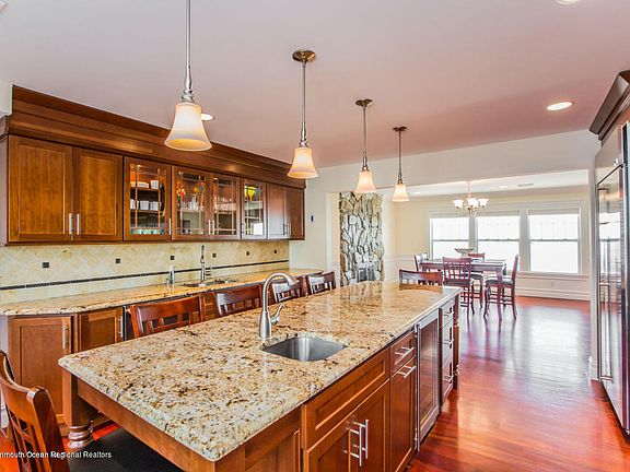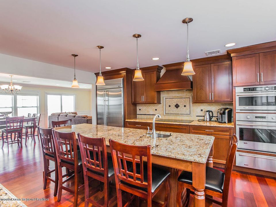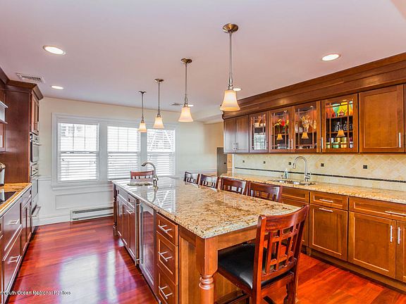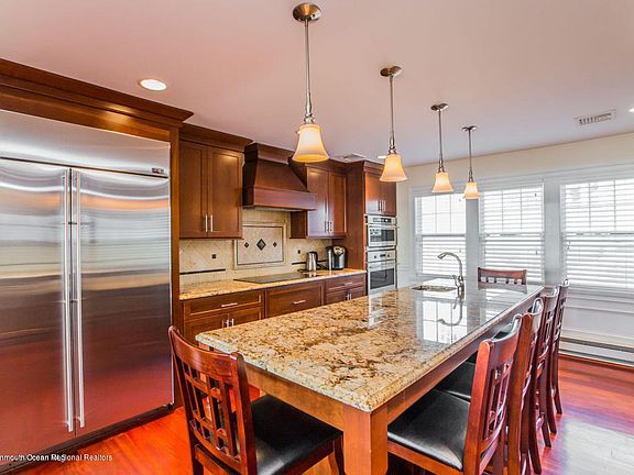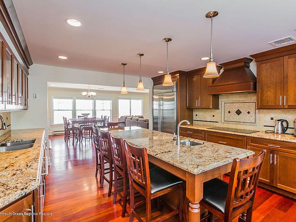 GORGEOUS LAVALLETTE OCEANFRONT HOME. 6 bedroom, 3 bath, Outside shower. Oceanfront with Gourmet kitchen and 9 foot Island. This is probably the best built home on the oceanfront on the East Coast. The exterior walls have galvanized tie bars and galvanized cross bars, & hurricane split truss roof. All windows and doors are hurricane grade. There are two 400 ft decks facing the ocean. Two zoned Central Air and separate heating thermostats in each room. A full stand up attic space, custom storage shed, and 3 Foot crawlspace with concrete floor beneath home for storage and built with 30 foot extra large and extra long Dock pilings. Year round home or a great investment for seasonal rental which sleeps 14. All downstairs flooring is Brazilian Hardwood, All Upstairs is all Italian ceramic tile, and gorgeous decorative molding throughout the home. Gorgeous wood burning fireplace. Top-of-the-line GE Monogram appliances, Monogram wine cooler, 36" built in state of the art convection stovetop, and, Advantium speed cook oven with 3 built-in warming trays below. ABOVE ELEVATION CODES. This gorgeous OceanFront Home DOES NOT have to be raised. Low Flood Insurance is transferable and currently only $600 a year.