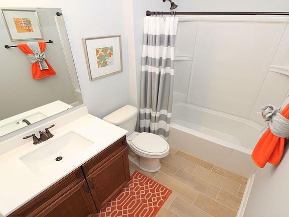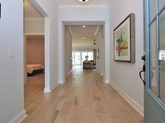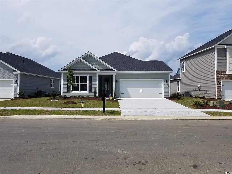 Beautiful open 1-story floor plan! Main living area has 11 ft. high ceilings, Large kitchen with breakfast bar/ counter height island with granite, corner walk in pantry, stainless steel appliances with a natural gas cooking, and 36" staggered white cabinets. Hardwood-look tile flooring in main living areas, kitchen, bathrooms and laundry. Master suite has double closets, Tile Shower, linen closet, and double vanity. Large covered back porch off living area. Golf cart to the beach and The Market Common restaurants & entertainment. Photos are of model home of same floor plan.