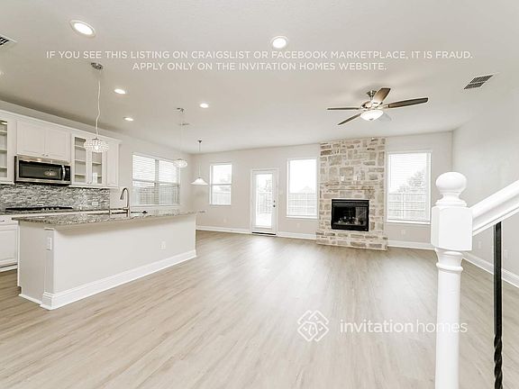 Home Features and Amenities: Air Conditioning, Fenced Yard, Fireplace, Garage, Granite Countertops, Kitchen Island, Long Lease Terms, Luxury Vinyl Plank, Patio, Pet Friendly, Recessed Lighting, Smart Home, Stainless Steel Appliances, W/D Hookups, and professionally managed by Invitation Homes.