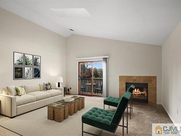 PREMIUM OFFERING - Second floor, top floor, end unit condo facing the back of the building (not the parking lot!). This is the largest one bedroom floor plan in Ravens Crest. Unlike other condos in Plainsboro that were built in 1985, this condo was constructed in 2011 to updated building code requirements. Major upgrades include NO POPCORN CEILINGS, modern kitchen and bathroom cabinetry, upgraded Siemen's electrical panel, white tub with white subway tile surround and brushed nickle hardware, modern bath vanity, white updated toilet. Upgraded tile flooring in the kitchen and bathroom. Woodburning fireplace with modern tile surround that has passed the Plainsboro Township required Level II fireplace inspection and is ready for winter use. Freshly painted throughout. Living room features sliding glass door to wood balcony, skylight and fireplace. Bedroom features large walk-in closet and window found only in end units (at the end of the building) offering extra light and great air flow. Outside secured storage closet for bikes, seasonal furniture, etc. to left of entry door. Ravens Crest offers community pool, tennis, playground, volleyball court, BBQ picnic area, park benches, and beautiful views. Award winning Plainsboro/West Windsor school system. Close to restaurants, shopping, NJ Transit, local farmers markets, historic Cranbury and Princeton, NJ. Please note each condo may have only one fur bearing pet. This community does not permit commercial or oversized vehicles. Ravens Crest is a NO SMOKING community - no smoking in the condo or on the grounds. Professional on site management. Patio table, 2 hcairs, dining room table and 4 chairs may be included in the sale at no charge if the Buyer wishes. If not, they will be removed prior to closing. Living room and bedroom are virtually staged. Amazing opportunity to own an updated Plainsboro condo of your own! Why pay rent?!?!?