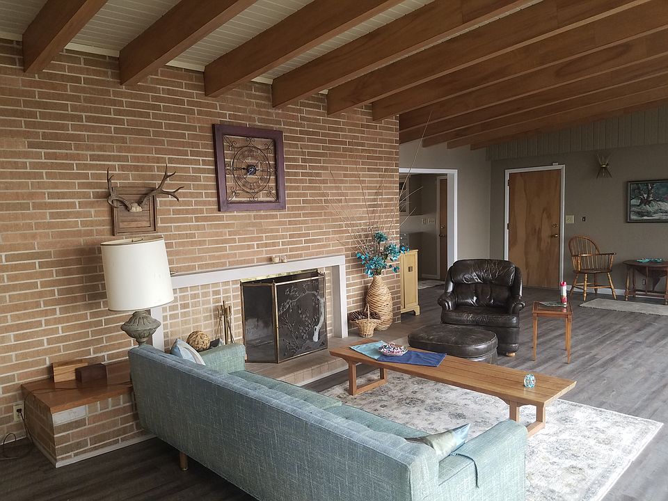 You won't want to miss this Mid-Century Modern Ranch with absolutely splendid river views! The kitchen has been recently updated with new appliances and flooring. The living room boasts beautiful beams in the ceiling, a stone fireplace, & top-to-bottom windows that provide breathtaking views. Down the hall you'll find 2 bedrooms, a full bathroom, and a Master Suite with it's own en-suite bathroom. Relax in the evenings on the screened in porch that looks over your 1 acre lot. The walk-out lower level holds even more potential with partially finished living spaces! You'll find another bedroom, family room with fireplace, and a full bathroom down here. There's also an abundance of storage available. Check it out today!