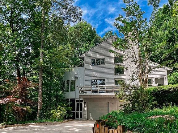 Welcome Home. Unique property with amazing views. Custom built in 1988 the home is oriented on the lot to allow for spectacular seasonal lake views from the breakfast/dining room as well as the master bedroom. The kitchen features stainless appliances, granite countertops, and a built-in wine refrigerator. The recently updated master bath offers a bit of elegance and sophistication. The vaulted ceilings, rock fireplace, and inlaid hardwood flooring makes for a warm and cozy living room. With a bedroom on the main level and the master bedroom upstairs as well as another bedroom with a private bath all residents and guests have plenty of privacy and space. The lower level has a workshop, 2 car garage and plenty of storage. Plumbed for a bathroom and boasting high ceilings, this area has unlimited potential. Enjoy a screened in porch as well as multiple decks for entertaining and enjoying the views. Bayshore now has WC Fiber telecommunications! Fast and economical. Lake access including a boat ramp and a park. Enjoy kayaking and tennis. All just a few minutes walk from the house. There is an annual voluntary HOA contribution of $150.