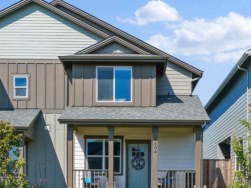 Still Looks and Feels Like NEW! Lovely Townhome with covered front porch and side patio. Open concept Main level living w/attached 2 car garage. Kitchen features a pantry, island, 5 burner gas range and more. Convenient 1/2 bath down with 2 full up. Primary bedroom w/ample space and lovely vaulted ceiling bringing lots of natural light. Walk-in closet, Bath w/double sinks and shower. 2 additional good size bedrooms up & lots of hall storage. Laundry up too for easy use. NO HOA and better than renting.