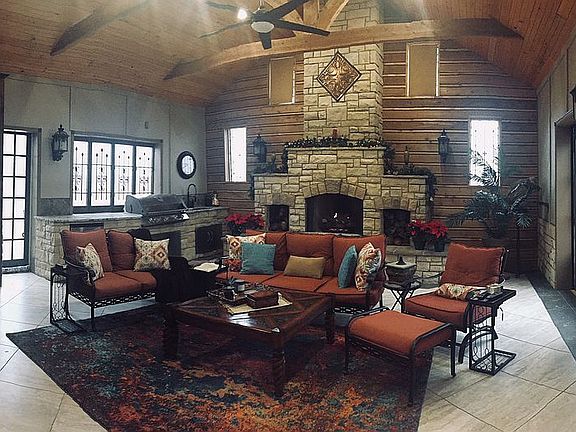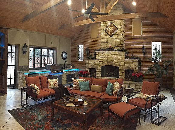 Elegant Jim Bowers custom built. Home has beautiful landscaping, stained & scored concrete floors in the main living areas & kitchen, great open floor plan, gourmet kitchen, 2x6 construction throughout, solid wood doors througout. Greatest feature is the outdoor living area, which is enclosable for weather-proof use year-round. All bedrooms have walk in closets. Huge bonus room/ theater room upstairs has full bath, 2 closets & could be a 5th bedroom. Master bedroom bath has his-n-her vanities, walk in shower, whirlpool tub & a walk in closet to die for. This home is built for lots of family fun & entertaining. It also, has a study with hardwood floor. Located in a quiet gated neighborhood. HOA dues are $950 annually
