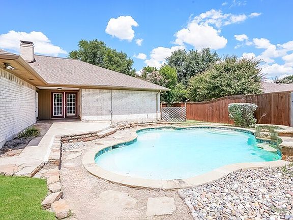This 3-bedroom, 2-bathroom home in Plano offers plenty of space and character, inside and out. A large front lawn creates a welcoming first impression, while the backyard is highlighted by a luxurious pool with stone accents and a unique design, perfect for relaxing or entertaining.