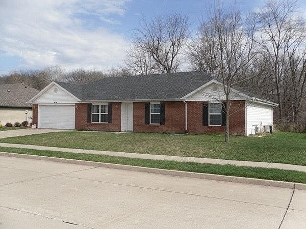 House for Rent @ $1150 per month 3 bedroom, 2 bath, 1700 square foot ranch home with attached 2 car garage. Great one level home with spacious, partially fenced, backyard on a good-sized lot which backs out to woods and a creek. There's a large kitchen with ample cabinets and counter space, breakfast bar and a dining area which opens out to an enjoyable 3 season sun room. The living room has a vaulted ceiling and the larger bedroom has its own walk-in closet and private bathroom with a double-sink vanity. Conveniently close to Oakland Park, schools and shopping. 10 minutes to MU. Credit check, background check and references required. Currently occupied, viewing by appointment only. No section 8. No smoking. Small dog or cat may be permitted with separate damage deposit. One year lease Call 573-529-6643