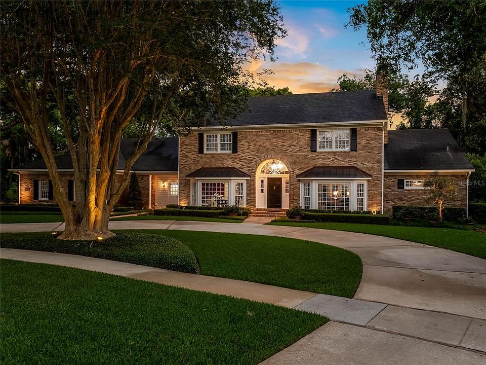 Nestled in a serene cul-de-sac, this traditional brick home offers an oasis of tranquility and elegance. With four spacious bedrooms each with large walk-in closets and three and a half bathrooms, this residence is perfect for families of all sizes. The mature landscaping and meticulously maintained yard enhance the home’s charm, while the expansive .76-acre lot provides ample space for outdoor activities.The property features stunning landscape lighting that highlights the beauty of the grounds. The large master suite on the first floor boasts separate his and her sink areas, make-up vanity and four closets including two walk-in closets providing plenty of storage space. The spacious living room offers picturesque views of the beautiful pool with a tranquil two-level fountain and the private, tree-lined lot along the creek. Upstairs, you’ll find a second master suite, along with two additional bedrooms, offering plenty of room for family or guests. The eat-in kitchen overlooks the back patio and pool, making it a perfect spot for casual dining. The home features an elegant formal dining room while the family room is casual and multifunctional with plenty of room for the whole family to relax together. Snuggle around the fireplace or gather around the piano on holidays or year round in the large living room. Both living- and family- rooms French doors open offering easy access and stunning views of the salt water pool and private yard, ideal for entertaining. The oversized three-car garage includes a workbench, providing ample space for storage and projects. A circular driveway adds a touch of elegance and convenience. The laundry room, equipped with a second refrigerator, adds to the home’s functionality. A quick walk or bike ride to Dommerich Elementary or Maitland Middle schools and just .3 miles from the Maitland Community Park, this home offers easy access to trails, sports courts, and playgrounds, making it perfect for an active lifestyle. This exquisite home is a rare find, combining comfort, convenience, and beauty in a sought-after location.