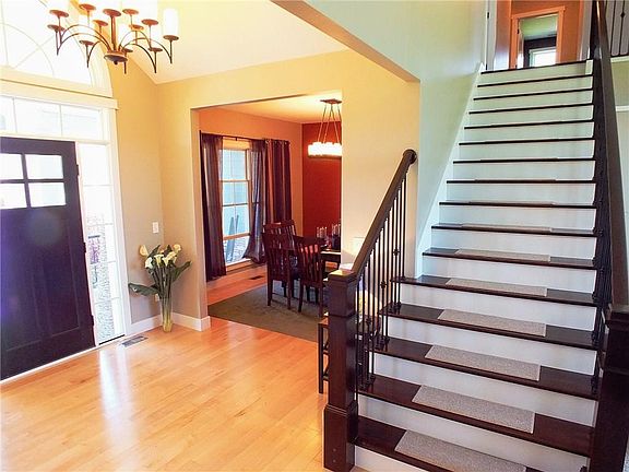 Located on a 2.75 A country lot, this stunning 4 bedroom, 2.5 bath, 3-ca att garage, two-story was built in 2010 and features 3187 SF, open contemporary design, formal dining room, large kitchen with stainless steel appliance package and breakfast island bar, 2-story living room with floor to ceiling windows and stone GLFP and large owner's suite with 2 large closets and large bathroom with double vanity and separate shower and tub. Other amenities include open wrought staircase, bonus/rec/4th bedrm, cement board and stone siding, large rear deck, walkout basement w/some framing and plumbed for bath & wet bar. Beautiful view in every direction and part of rear yard is wooded. Other features include Geothermal HVAC, 6-panel doors, maple hardwood floors, round-top windows. Owner's suite features large bathroom with double vanity, jetted tub, ceramic-tiled walls and floors, octagonal tray ceiling, two WICs. Kitchen has granite counter tops, SS backsplash & vented range hood, side bar.