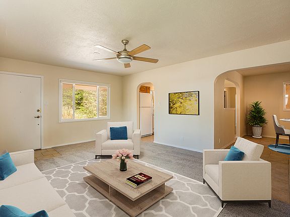 Quaint and clean Uptown home offering convenience and tons of updates. This home has been lovingly maintained and features two living areas, one with a kiva fireplace, formal dining area, three bedrooms and a large service/laundry area with storage and countertop space. Tons of natural light allows all of the homes updates to shine, which includes updated kitchen cabinets, updated fixtures throughout the home, new carpet, new paint, new stucco, foam roof and updated windows. Landscaped both front and back with low maintenance xeriscape, makes enjoying the outdoor space easy. The backyard also features a covered patio and large storage shed. The single car garage is attached and offer tons of storage! This home is a wonderful opportunity and won't last long!
