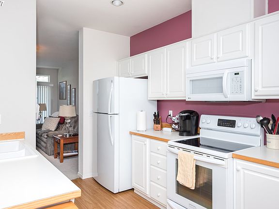 Great end-unit townhouse style condo with a 3+ car garage and room for a small shop close to THPRD nature park. The main level has a large living room with a gas fireplace, slider that leads to a patio, kitchen with an eating bar and an adjoining dining room that has a slider leading to a second patio. Upstairs there is a master bedroom with a walk-in closed and full bath. There are two additional bedrooms and a second full bath.