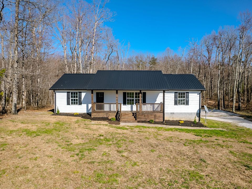 Welcome to your new home! This spacious property sits on over 1 acre of land and features a peaceful pond. There's a concrete parking pad ready for your garage. Complete remodel includes new HVAC, siding, gutters, paint, landscaping, cabinets, appliances, flooring, and light fixtures. Relax on the covered front porch or entertain on the large back deck. Inside, enjoy the convenience of walk-in closets and granite countertops in the kitchen and bathrooms. Schedule a viewing today and make this cozy house your own!