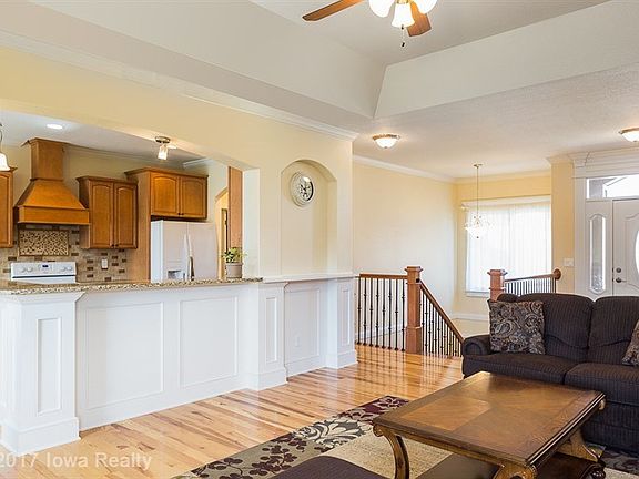 Welcome home! Builder's personal home now available! This home is truly a must see. Photos don't show the attention to EVERY detail and gorgeous custom finish work. Open & spacious with 5BR, 3 full bath, 3000+ sq ft finished. Main level includes REAL 3/4" hardwood floors throughout great room, kitchen and master BR. Master suite includes bath w/double vanity, whirlpool tub, tile shower, walk in closet. 2 add'l BRs and full bath w/ tile/granite. Finished walkout lower level includes great entertaining space w/lrg wet bar, family room, 2nd fireplace, gaming table area, 2 more BRs, and a full bath. Great Waterford Landing location in Waukee schools. Call for an appointment today!