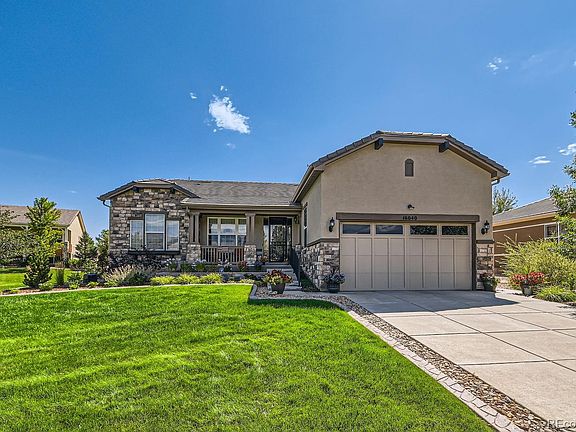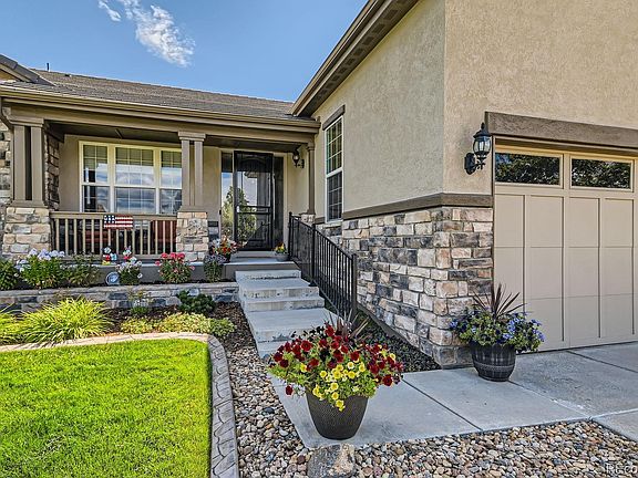 Come see this Breckenridge Mountain Elevation Home with over 3000 sq ft finished home which includes an extra side lot with front Mountain Views. Add a gazebo or outdoor games to this one of a kind additional side yard . This homes upgrades include extended hardwoods, granite countertops, gourmet kitchen with cooktop and double ovens, ceiling speakers throughout the home, 2 security storm doors, silhouette and honeycomb shades, security system and a finished basement. 3 bedroom, 3 bath home is perfect for having extra family and guests stay and directly across from the open space with over 48 miles of trail system. Enjoy this open floorpan which includes an eat in kitchen, breakfast bar, separate dining room and French door to a private office/den.. Granite butler pantry with cabinets, extended cabinetry in the laundry room including a utility sink, washer and dryer with pedestals and coat closet. Enjoy a 5 piece bath off the primary bedroom with walk in closet, tray ceiling and bay window and extra door to the back covered deck. The 2nd bedroom has a full bath adjacent with granite counters and upgraded sink and faucet. Ceiling fans, pendant lighting, nest thermostat, are all included! The 5 ft extended 2 car garage has extra shelves for additional storage and ample room bikes and sports equipment. The wrought iron railing brings you down to double french doors to a finished basement with a 2nd cozy fireplace, extra rec room, 3rd bedroom, full upgraded bath with surround tile and lots of storage. Take advantage of the 30,000 sq ft recreation center with indoor/outdoor pool and hot tubs, indoor walking track and full fitness center. Over 130 clubs, billiard room, library and a plethora of indoor and outdoor concerts. Close to shopping, restaurants, Denver, Boulder, DIA and Broomfield Rec Centers.