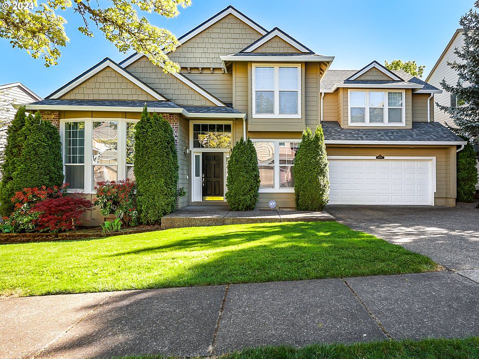 Welcome to your traditional dream home with brand new roof & gutters! Once inside, you'll be captivated by the stunning entryway. Notice the warm-toned engineered hardwood floors that flow seamlessly through the living areas. Formal living room & formal dining room add an elegant touch, while the family room with gas fireplace & ceiling fan create a cozy space to relax. The dining nook with a slider door to the covered deck & the open-plan kitchen create the perfect setting for casual dining & entertaining. Beautiful granite counters, island with storage, stainless steel appliances & a walk-in pantry make the kitchen a functional & inviting space. The generously sized upstairs primary suite features vaulted ceiling, ceiling fan & walk-in closet. The primary bath is a pleasant retreat with a soaker tub & double sinks, offering a spa-like experience. In 2022, brand new carpet was installed in the bedrooms & new central AC installed August 2023. Expansive upstairs bonus room with built in storage provides versatile space. Need a home office or extra bedroom? No problem, as there's a recently painted additional office/5th bedroom conveniently located on the main level. You'll also appreciate the oversized 2-car attached garage for ample storage space. Love to entertain, you're in luck! The large covered back deck is perfect for hosting gatherings or simply enjoying peaceful evenings outdoors. This home also offers a large fenced yard, ideal for gardening enthusiasts or those who simply enjoy spending time outdoors. Nestled in south Beaverton, you'll find yourself with quick access to Progress Ridge & Murrayhill restaurants, shops, & entertainment options & just down the road from Washington Square or Washington county wineries. Don't miss the opportunity to make this remarkable house your forever home. It's a place where cherished memories are waiting to be made.
