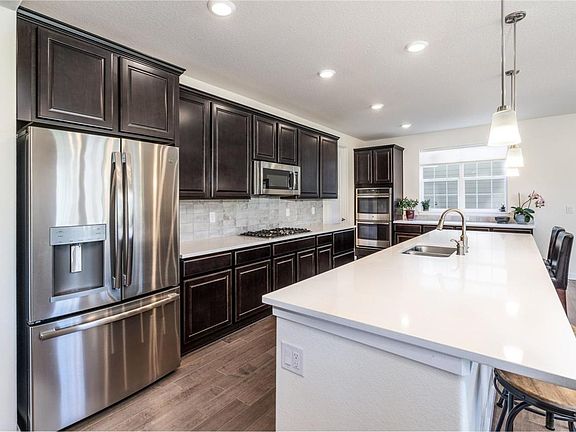 Only Canterbrook available for immediate move in! Shows like the model!!Absolutely STUNNING home w/all the upgrades you could ever want. Why wait for new? 4 bedrooms plus a loft & private office on the main floor. Hello gorgeous gourmet kitchen!! Entertainers dream showcasing a massive island w/tons of seating, stainless steel appliances, quartz counters, custom tile back-splash & HUGE pantry. Large dining space overlooking back deck & open space. Living room w/cozy gas fireplace. Hardwood floors throughout main level. Upstairs features a luxurious master suite w/5-piece bath, dual vanity, soaking tub, tiled shower, & walk-in closet complete w/custom organizer. 3 additional bedrooms, 2nd full bath w/quartz counters & tiled floors, loft & laundry room complete the upstairs. Tons of storage throughout the home. Private yard w/covered deck backing to green space. Over-sized 3 car garage w/additional tandem space. Huge basement, ready for finishing. Smart home, equipped w/Alexa.