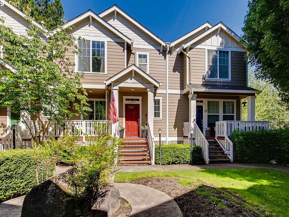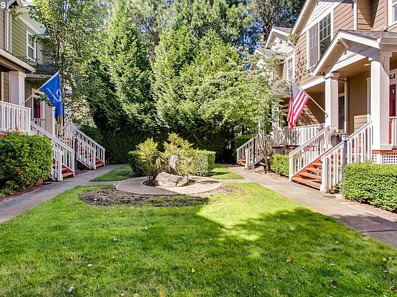Natural light floods into this stylish townhouse with double master suites, 9 ft ceilings, gas fireplace & recently updated with hardwood floors throughout the main & lower level. Conveniently close to Nike, intel, shopping, & transit. Bonus room on lower level perfect as an office or workout room. Front porch overlooks beautifully landscaped courtyard.