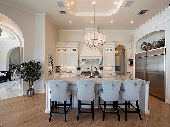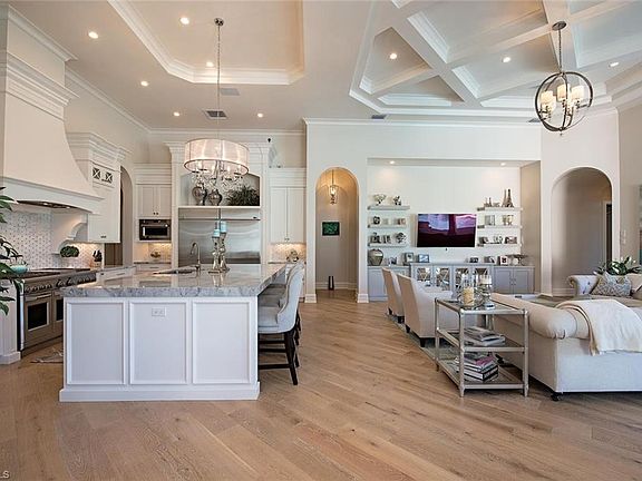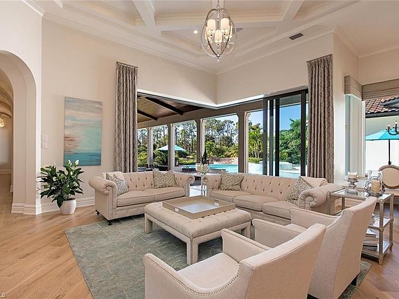 A rare opportunity to purchase a near new Modern Coastal interior design estate in the award winning 36 hole Mediterra golf and beach club. Designed by architect Design Standard and constructed by BCB Homes. A car collectors dream home featuring room for 12+ cars. This property is ideally situated at the end of the street featuring light and bright Southern rear exposure looking onto lake and golf course views. A spacious one level floorplan offering 5 bedrooms, office, state of the art movie theater, 500 bottle wine closet, generator, 2 laundry rooms, large covered lanai. An elaborate pool design fun for all ages featuring imported blue glass Sicis tile from Italy with swim up bar and shallow area sun deck area. A full list of features are available upon request. Multiple levels of membership are available. 12 million dollar clubhouse renovation was completed November 2019. Buyer to assume CDD.