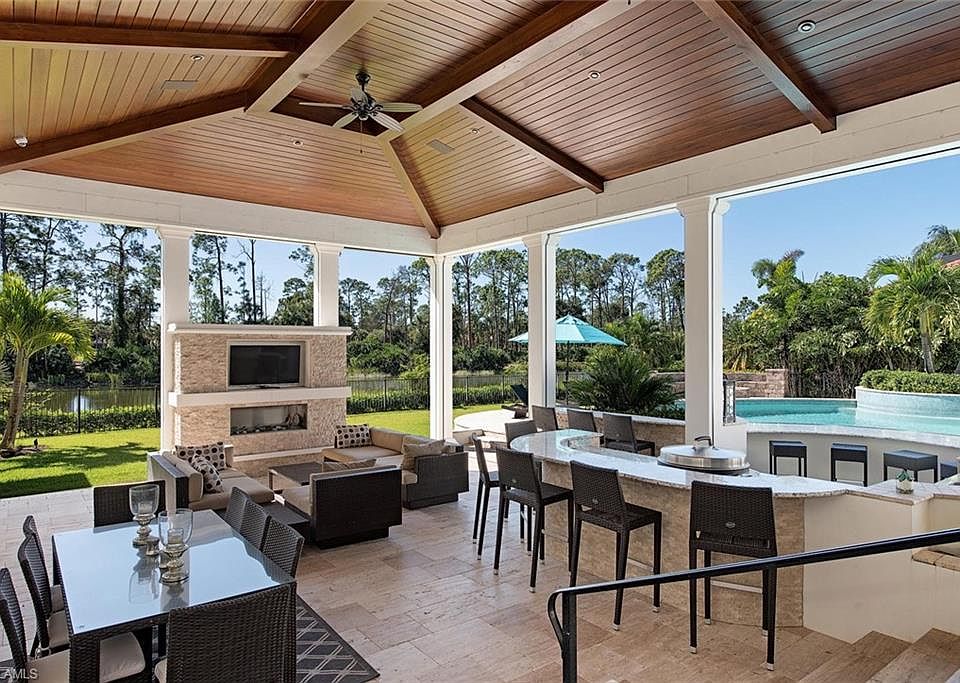 - Exterior Features: Fence, Patio, Built In Grill, Outdoor Kitchen, Outdoor Fireplace, Built-In Wood Fire Pit